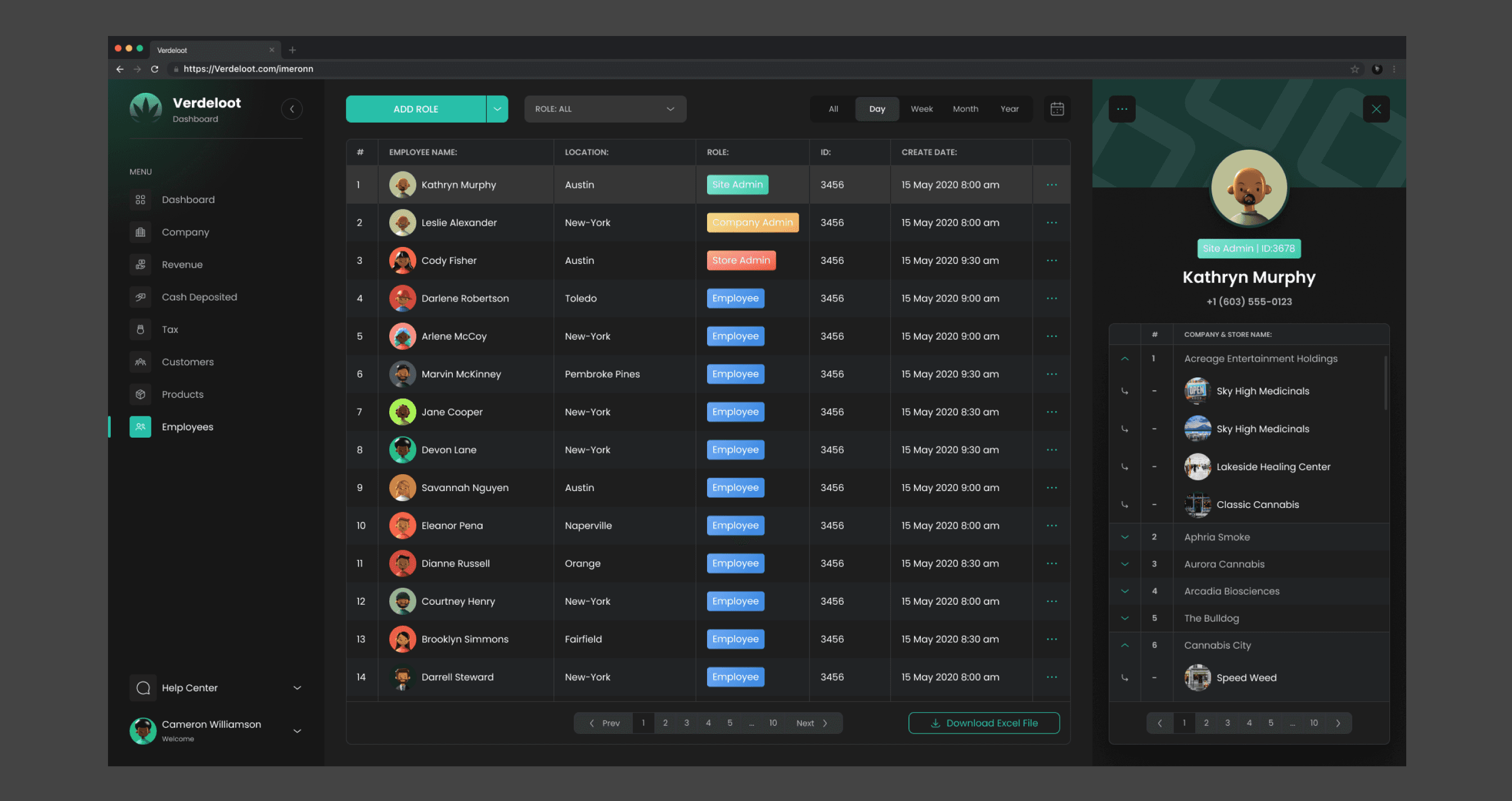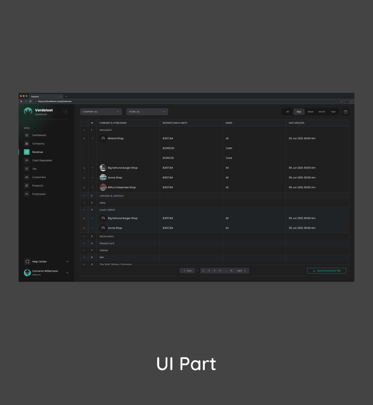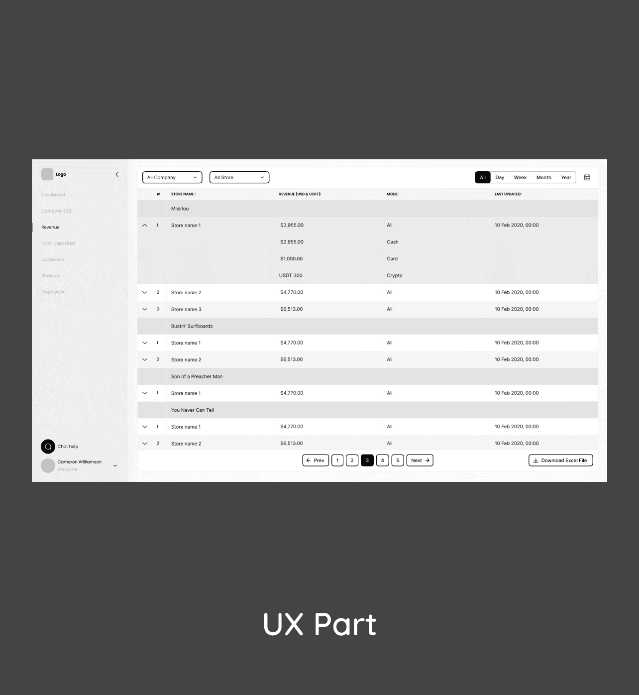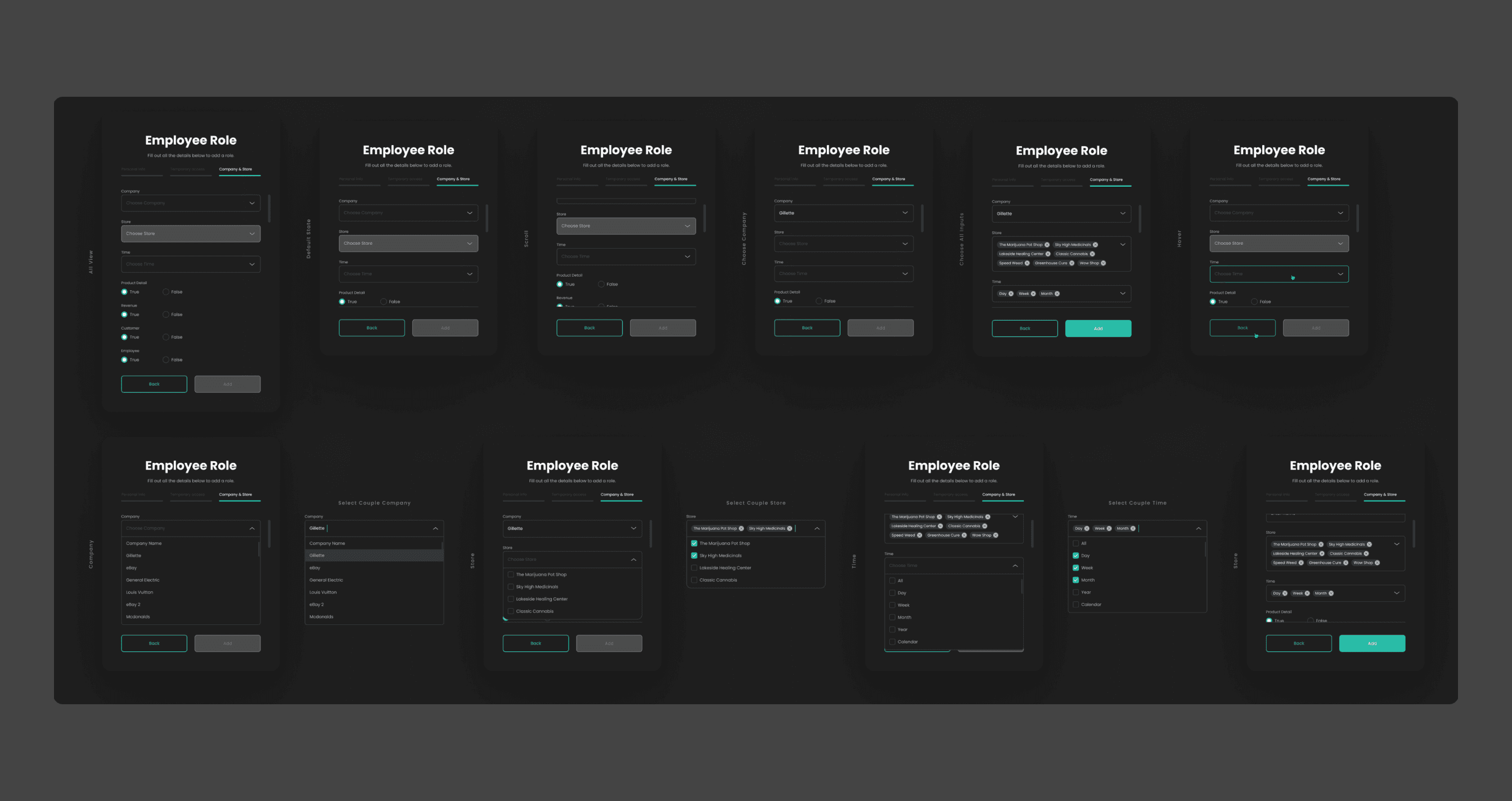 to improve sales, and designing an intuitive interface for various roles, including Site Admin, Company Admin, Store Admin, and Employee.